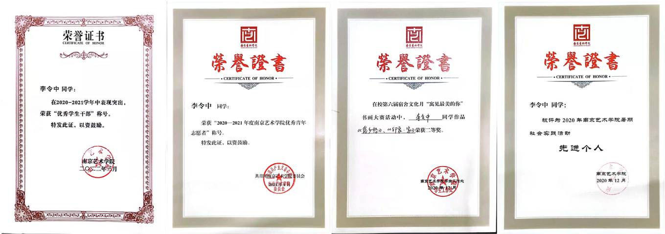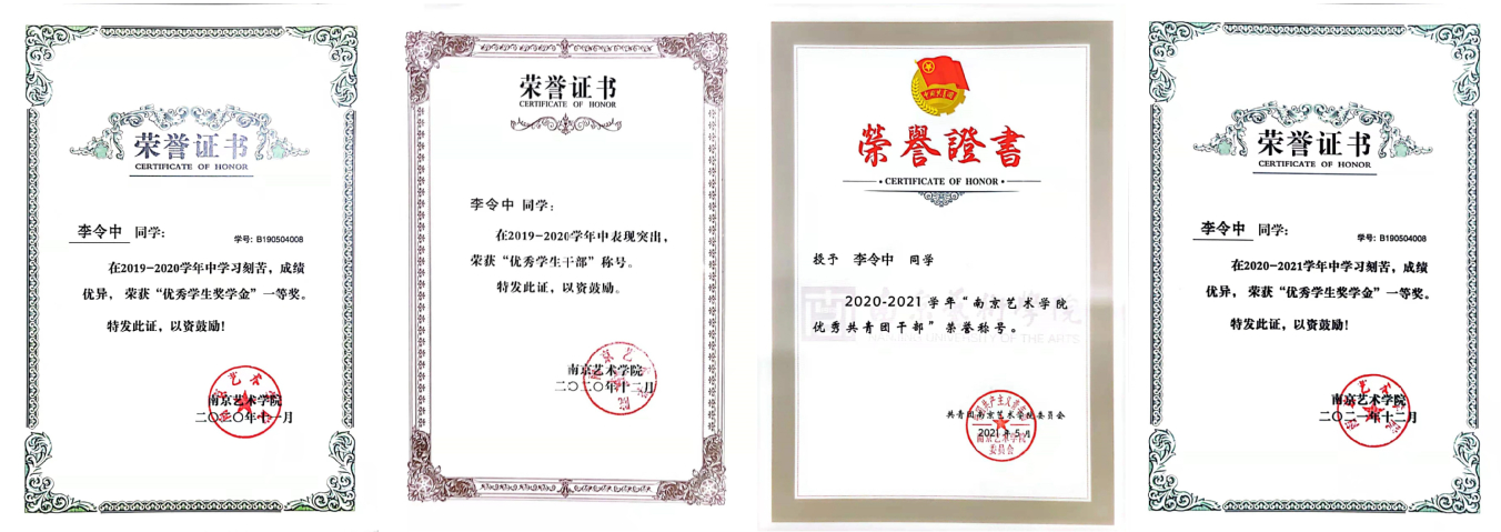 作为院员工会主席,李令中同学工作认真负责,具有良好的组织协调能力,思想活跃,性格稳重又不失风趣,工作中注意发挥主观能动性,锐意进取。在他积极组织和协调下,院团委和院员工会成功地举办了一系列比赛和活动。在疫情期间,他还组织员工会同学并参与了南京市鼓楼区宁海路街道古林社区核酸检测、演艺大楼、琴房管理中心和食堂等地的疫情防控志愿服务活动。连续两年荣获校级和院级“优秀员工干部”,还曾荣获校级“优秀共青团干部”、省级“优秀员工干部”等荣誉称号。