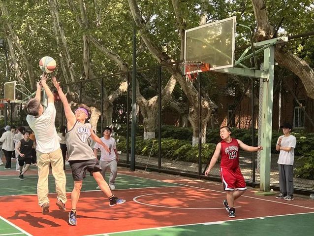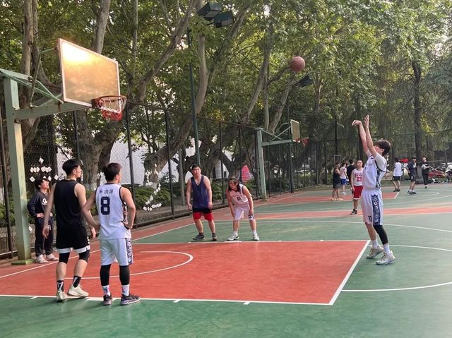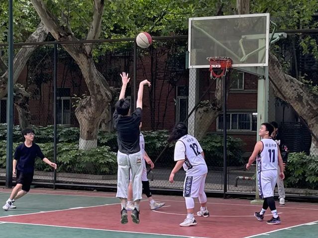 篮球划过午后阳光以一道完美弧线入框