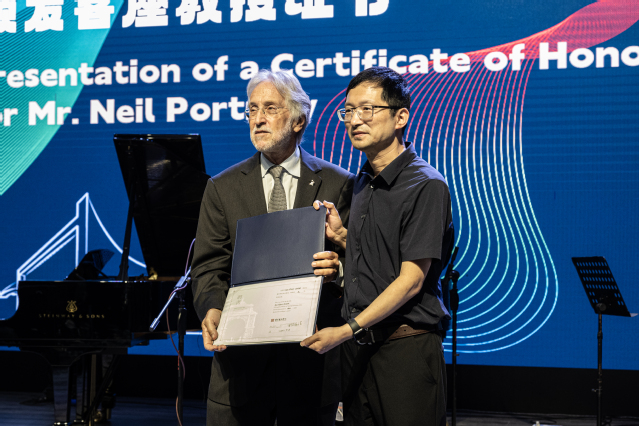 在流行剧场,卞留念和尼尔·波特诺带来了精彩的分享,并激励青年学子珍惜在校的学习、合作机会,不断磨练自我。我院师生为来访嘉宾与观众献上了精彩纷呈的爵士乐与民乐演出。现场座无虚席。