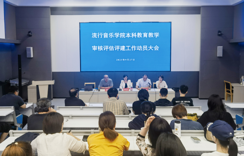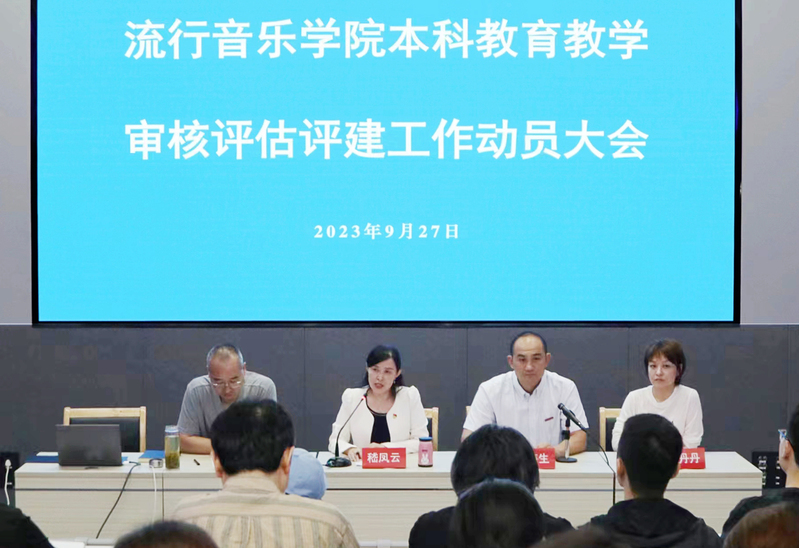 为全面部署新一轮本科公司产品审核评估工作,必一运动bsport体育于9月27日中午在演艺大楼116智慧教室召开新一轮本科公司产品审核评估动员大会,流行音乐公司党总支书记嵇凤云、副书记曹海生、副经理黄德俊、副经理张丹丹及全体教职工出席了会议。曹海生主持会议。