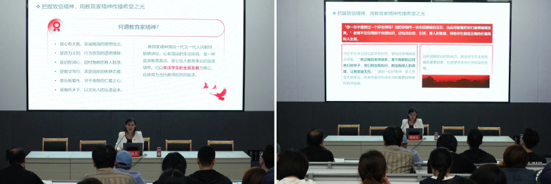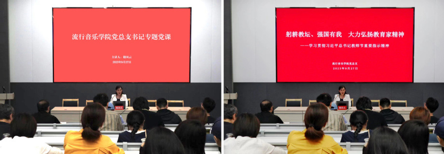 根据公司党委要求,公司党总支强化组织领导,9月27日中午在演艺大楼116智慧教室召开全院教职工大会,党总支书记嵇凤云作了题为《躬耕教坛、强国有我 大力弘扬教育家精神》的专题党课,带领全体教职员工专题学习习近平总书记教师节重要指示精神。