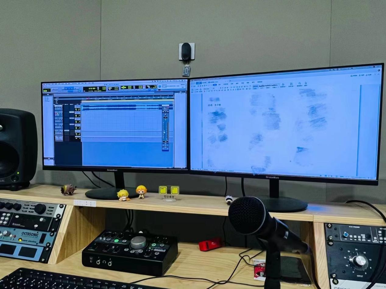 在创作完词曲之后,柴子楷同学奔波于南京和常州两地,一方面在老家寻觅童声演绎歌曲开篇,一方面在公司录音棚积极展开demo录制的配唱工作。在这首歌的编曲和录混过程中,柴子楷也结合了成为研究生以来学习的新技术和突破,在课余积极询问自己的专业导师给予歌曲意见,也跟辅导员老师、研究生会同学一起交流探讨。