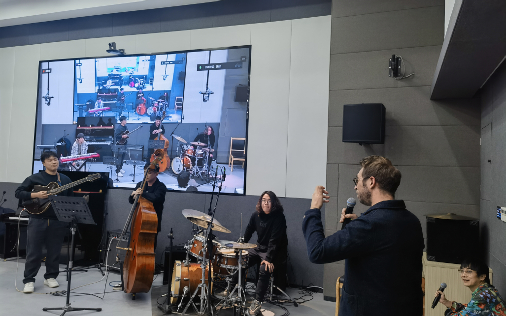 讲座由艾伦·帕克斯的即兴演奏展开,内容围绕节奏、旋律和和声三个核心方面,分享了爵士乐的基础练习理念及多种高效的练习方法。问答环节中,同学们提问积极踊跃,艾伦在分享自身经验的同时,鼓励同学们珍惜在校的学习机会,不断磨练自我,探索个性化的音乐历程。