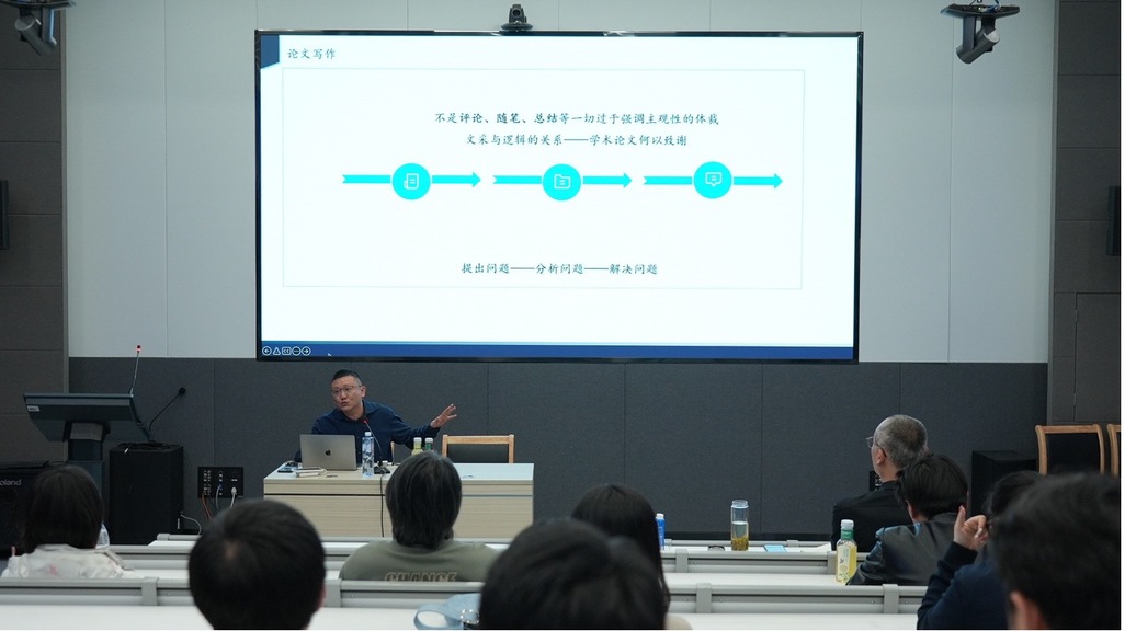 讲座开始,尤达教授首先从“论文写作规范”展开,他阐明论文写作是“提出问题——分析问题——解决问题”的过程。随后对论文中的“问题意识”进行了系统性的论述,分析了“问题意识”与社会发展的重大问题之间的相互关系,强调了要从“问题意识”入手对相关学科体系、学术体系及话语体系进行研究。