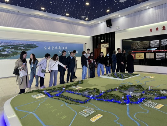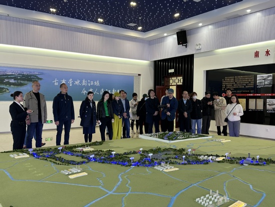 扬州运河三湾公园是扬州古运河游最古老的一段,是近年来大运河沿线环境整治、生态修复及现代航运示范区建设等不断推进的结果。党员们循着习近平总书记的足迹,沿着岸边参观运河生态建设,深刻体会习近平总书记所称赞“扬州是个好地方”的丰富内涵。在实地调研的过程中,党员们详细了解了大运河扬州段沿线生态修复和文化保护、古运河三湾片区环境治理与规划和博物馆建设等情况,表示要把习近平总书记对扬州的赞美和期望转化为持续奋斗的不懈动力,以艺术创作的形式让扬州越来越好。