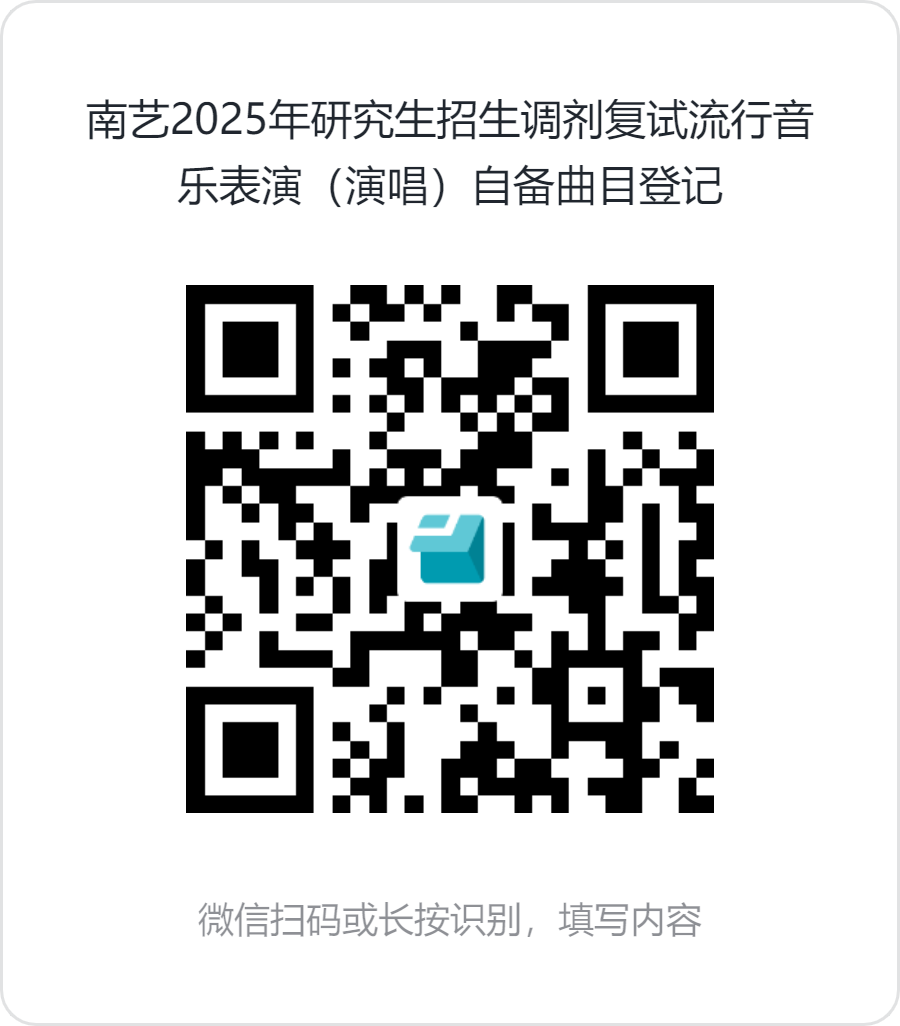流行音乐表演(演唱)方向的考生请按照招生简章的要求扫描下方二维码填写复试曲目(中外不同风格流行歌曲6首)